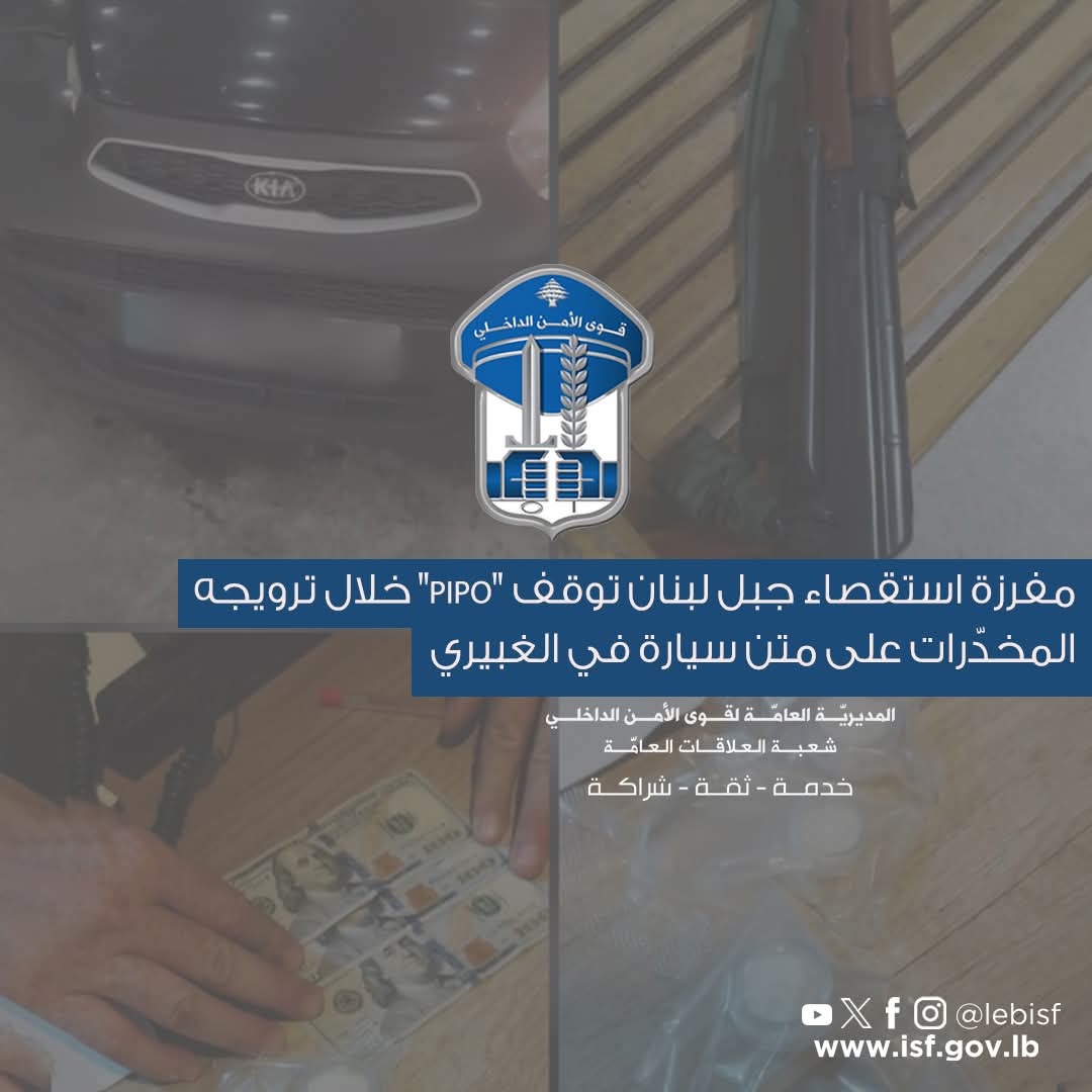 مفرزة استقصاء جبل لبنان توقف “PIPO” خلال ترويجه المخدّرات على متن سيارة في الغبيري.