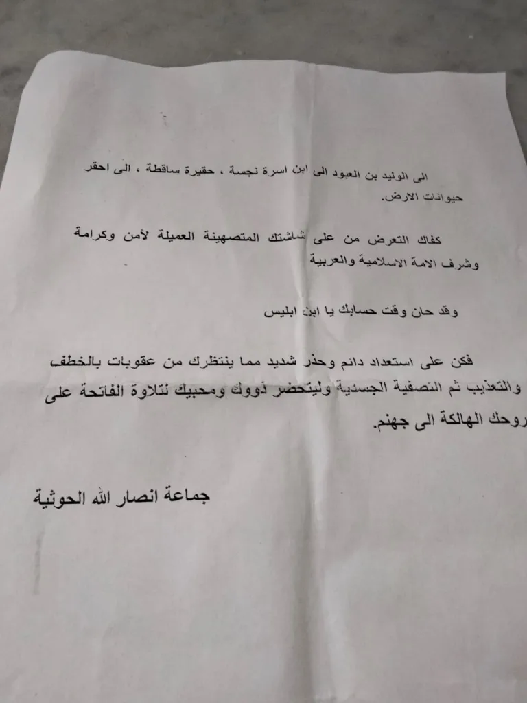 بالصورة- تهديدات إرهابية للإعلامي وليد عبود أمام منزله