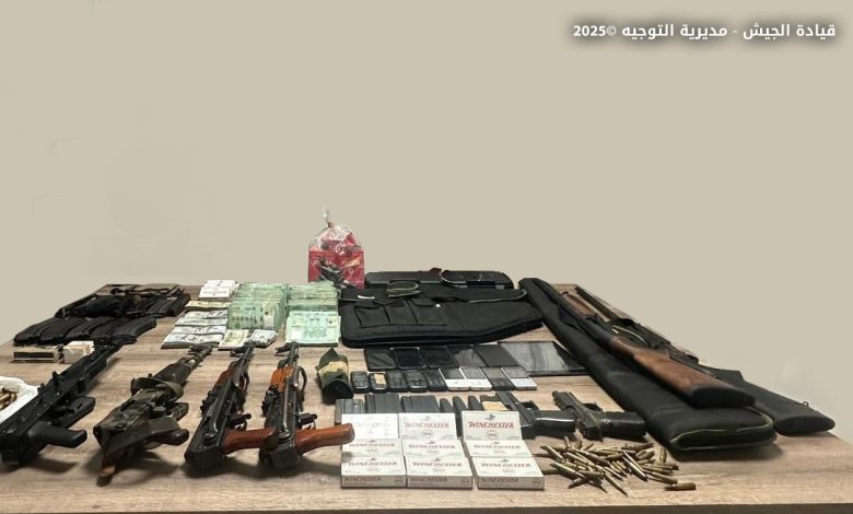 وضمن إطار ملاحقة عصابات الاتجار بالأسلحة الحربية، دهمت دورية من مديرية المخابرات في منطقة خلدة منزل المواطن (ع.ع.ق.) وأوقفته وضبطت في حوزته كمية من الأسلحة. ونتيجة التحقيق معه، دهمت الدورية مستودعًا عائدًا له في منطقة عرمون – البيادر وأوقفت السوريين: (ع.ح.)، (ع.ر.ح.)، (ع.ا.)، (ع.ج.)، وذلك أثناء نقلهم كمية كبيرة من الأسلحة والذخائر الحربية والمبالغ المالية.