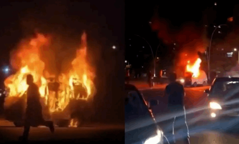 وتداولت حسابات وناشطون سوريون، عبر منصات التواصل الاجتماعي، مقاطع فيديو توثق ما حدث، وتظهر النيران تشتعل في السيارة المذكورة.