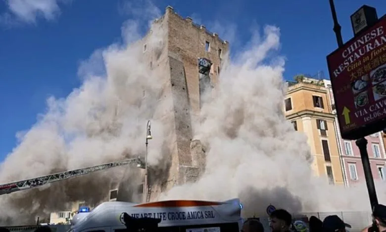 انهار جزء من برج تاريخي بالقرب من الكولوسيوم في العاصمة الإيطالية روما، اليوم الاثنين، وذلك أثناء عمليات ترميم، مما أسفر عن إصابة عدد من العمال.