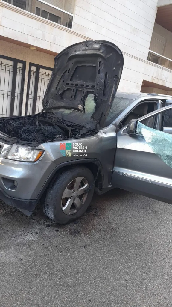 أكدت صفحة "زوق مصبح بلدتي" أنّ سيارة من نوع Kia سوداء اللون أقدمت، عند الساعة 6:05 صباح اليوم، على إلقاء قنبلة مولوتوف على سيارة رباعية الدفع من نوع Cherokee في زوق مكايل، ما أدّى إلى احتراقها.