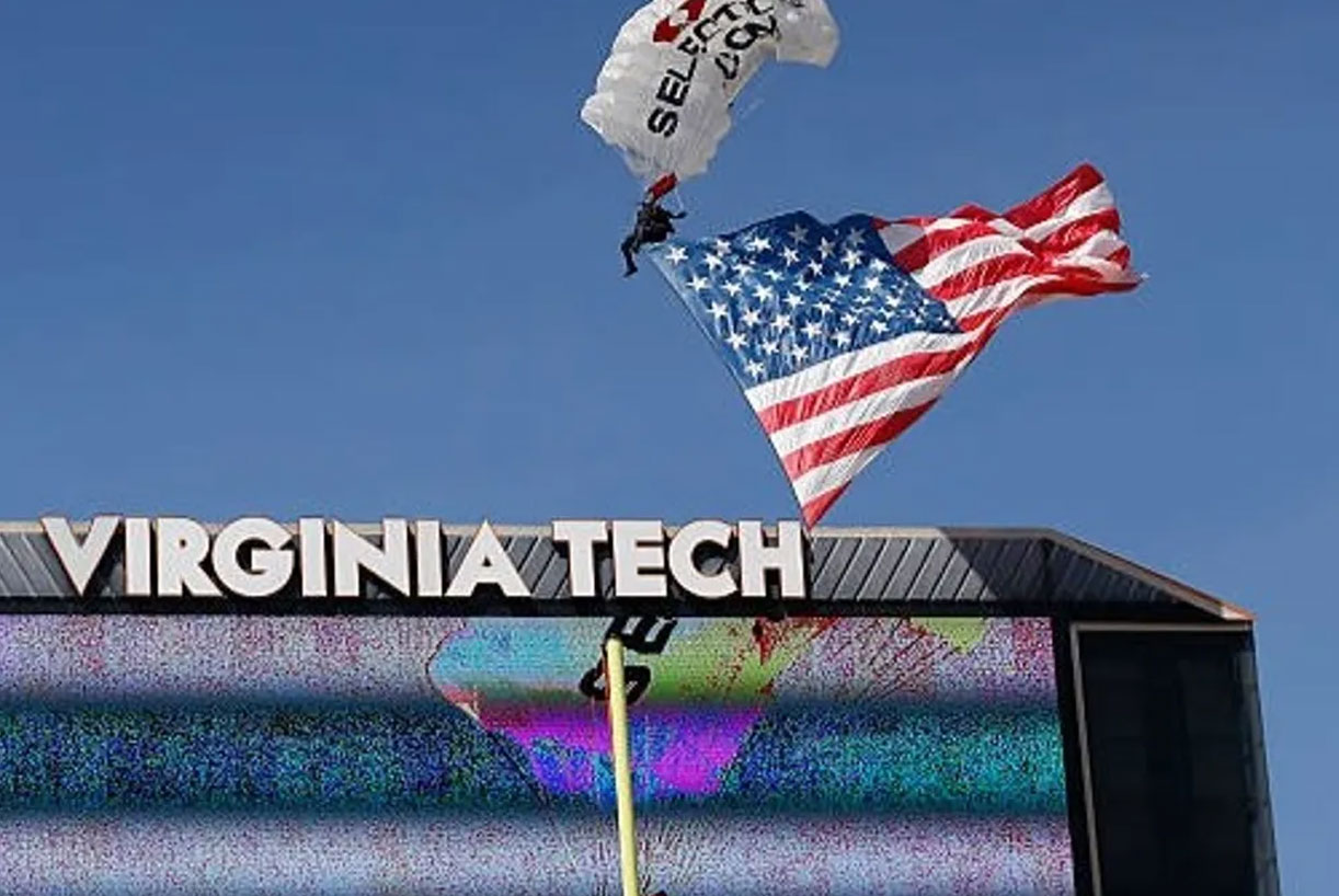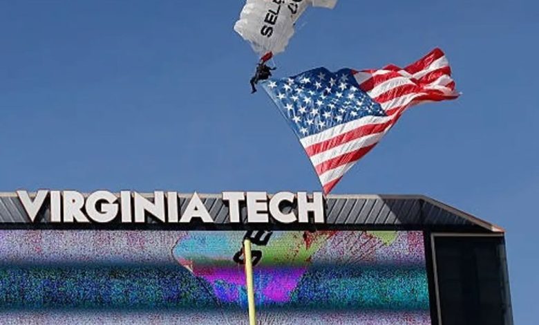 وشهد ملعب تابع لـجامعة فرجينيا للتكنولوجيا حادثة لافتة، بعدما انحرف مظلي عن مسار هبوطه المقرر وارتطم بلوحة عرض إلكترونية كبيرة، خلال فعالية تسبق مباراة ضمن دوري الجامعات.